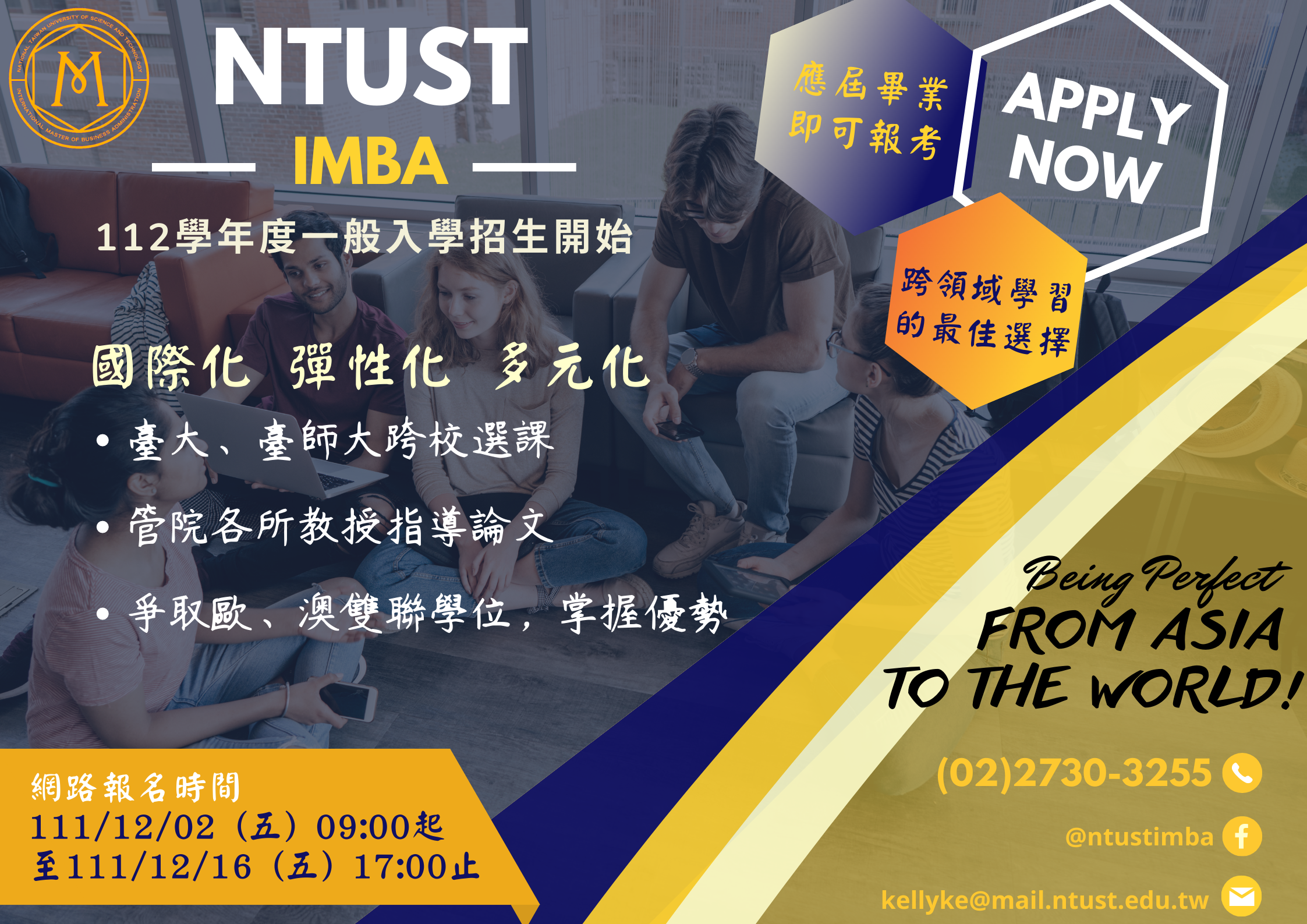國立臺灣科技大學112學年度MBA碩士班一班招生訊息