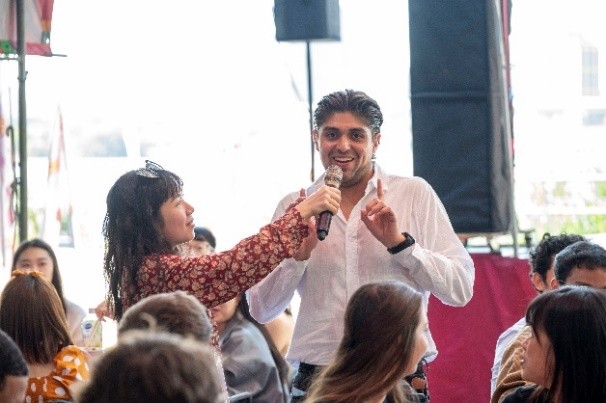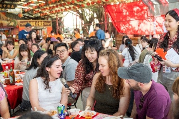 Interactive activities—including a Taiwanese-language mini game, a group dance to Wu Bai’s “You Are My Flower,” and a Bwa Bwei (divination blocks) experience—further bridged cultural differences. The event concluded with a Taiwanese-style “Ho-ta-la” toast and table-to-table greetings, leaving international students with a memorable impression of Taiwanese culture.